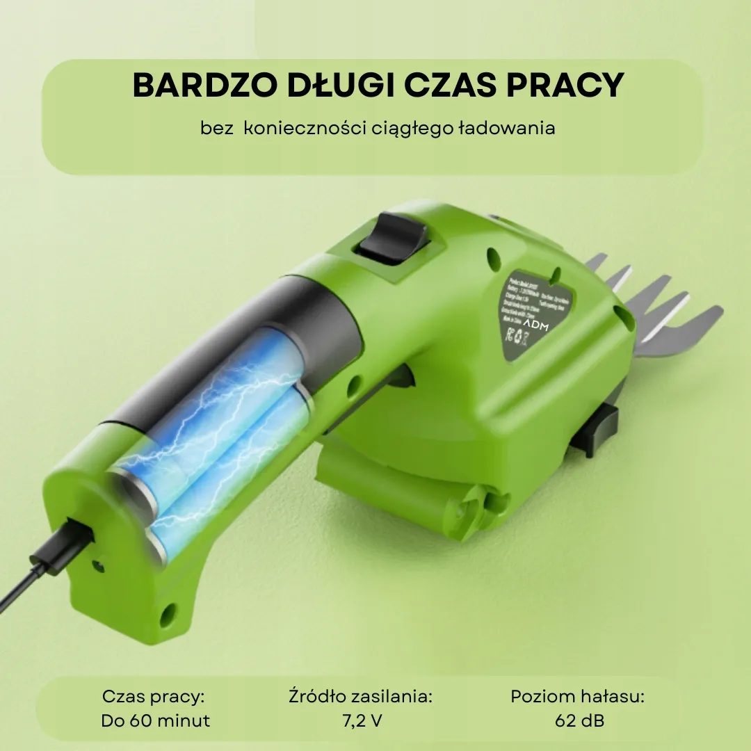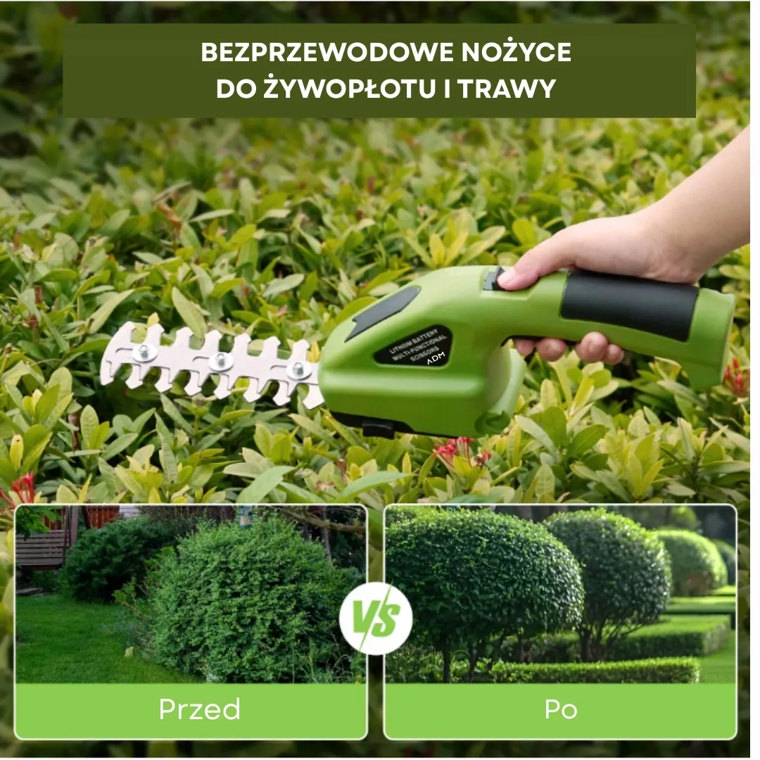 ### Bezprzewodowe nożyce ogrodowe 2w1 – trawa i krzewy