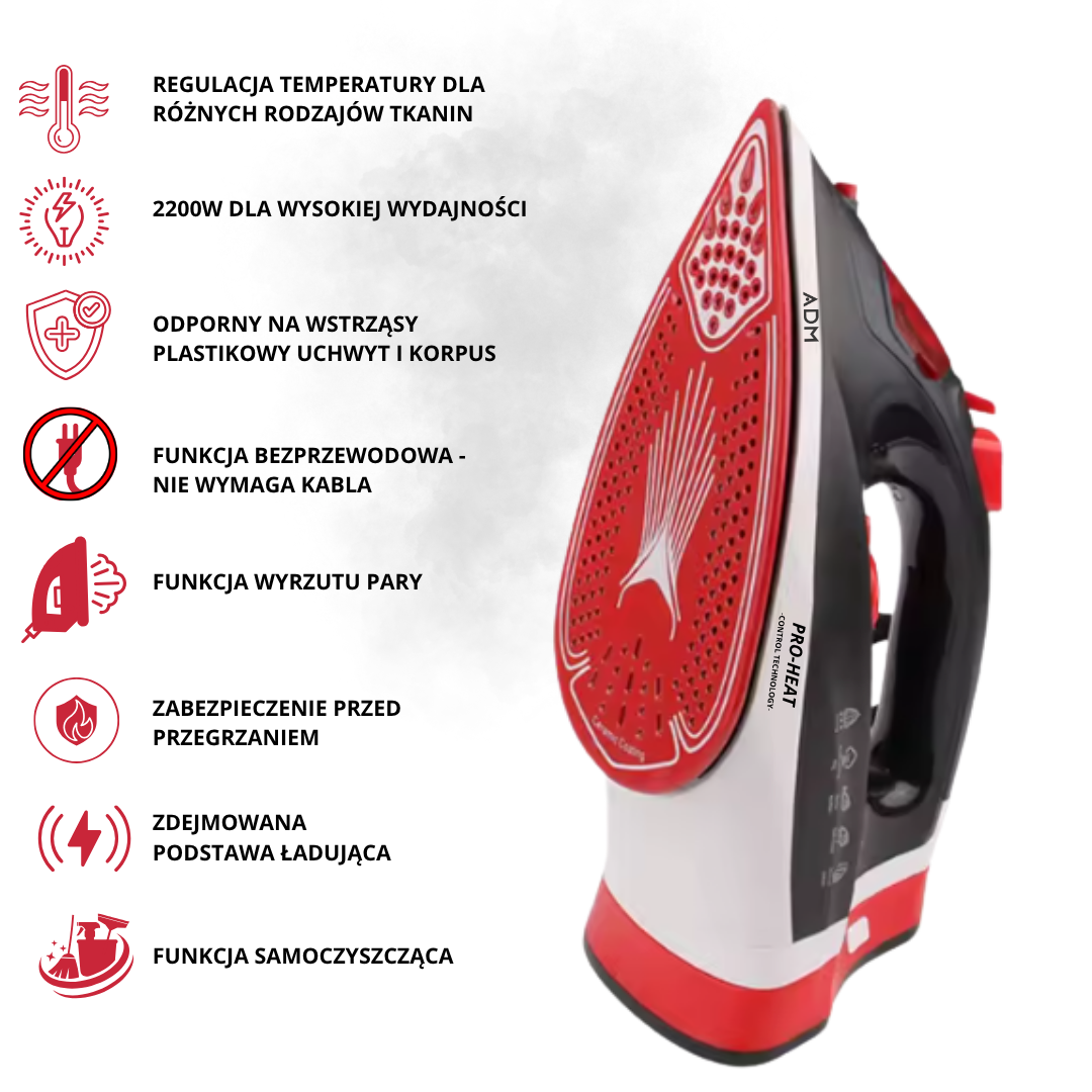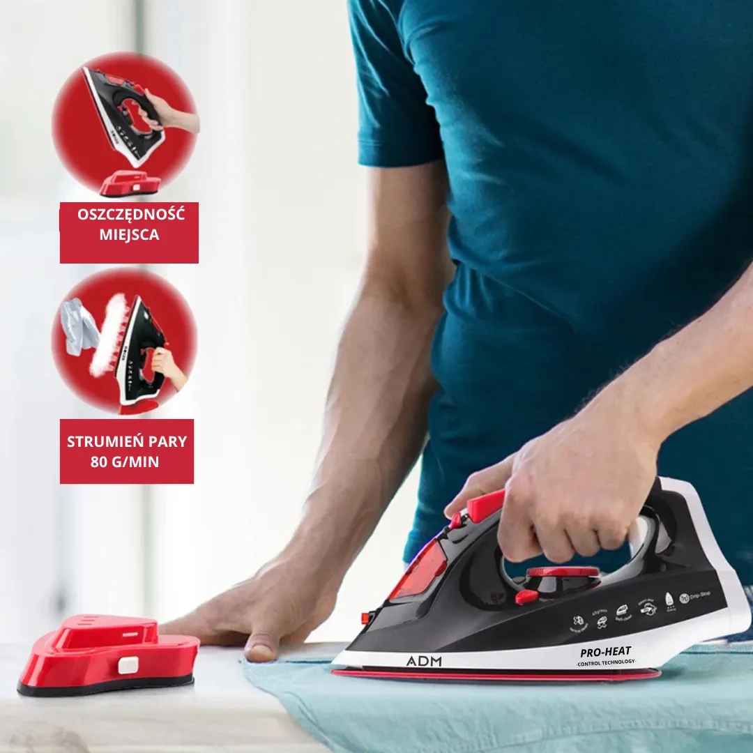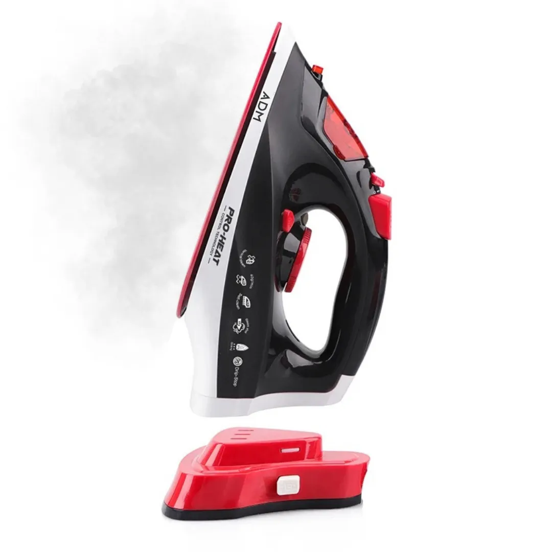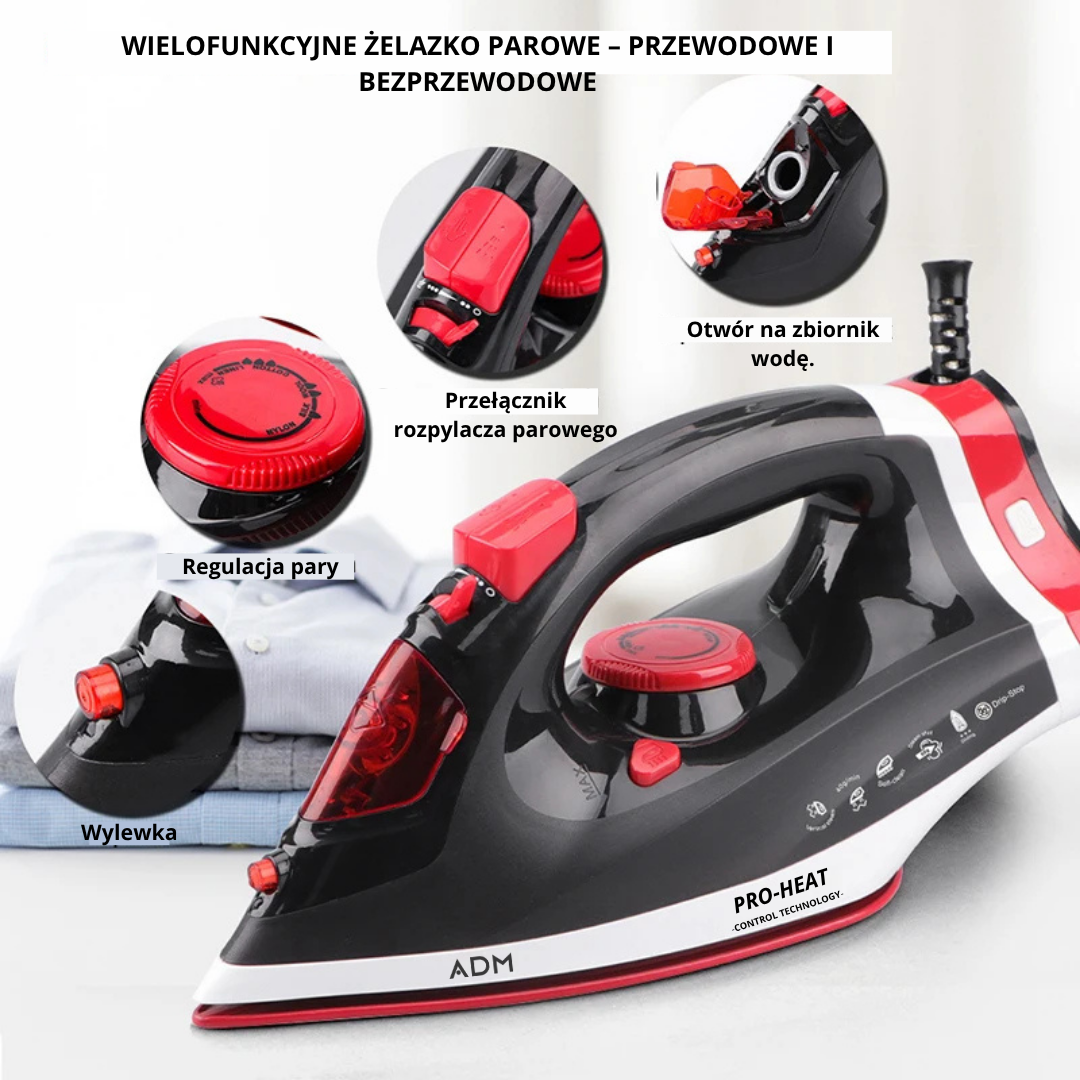 Prasuj szybciej, czyściej i wygodniej. Bezprzewodowe żelazko parowe 2400W z dwuwarstwową ceramiczną stopą, zbiornikiem 360 ml i mocnym wyrzutem pary usuwa zagniecenia w chwilę. Używaj bez kabla dla swobody albo z kablem dla ciągłej pracy. ✨