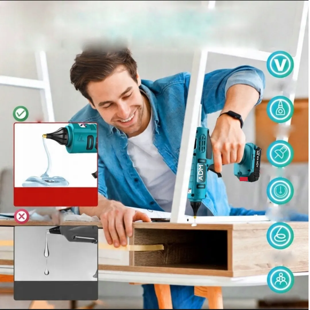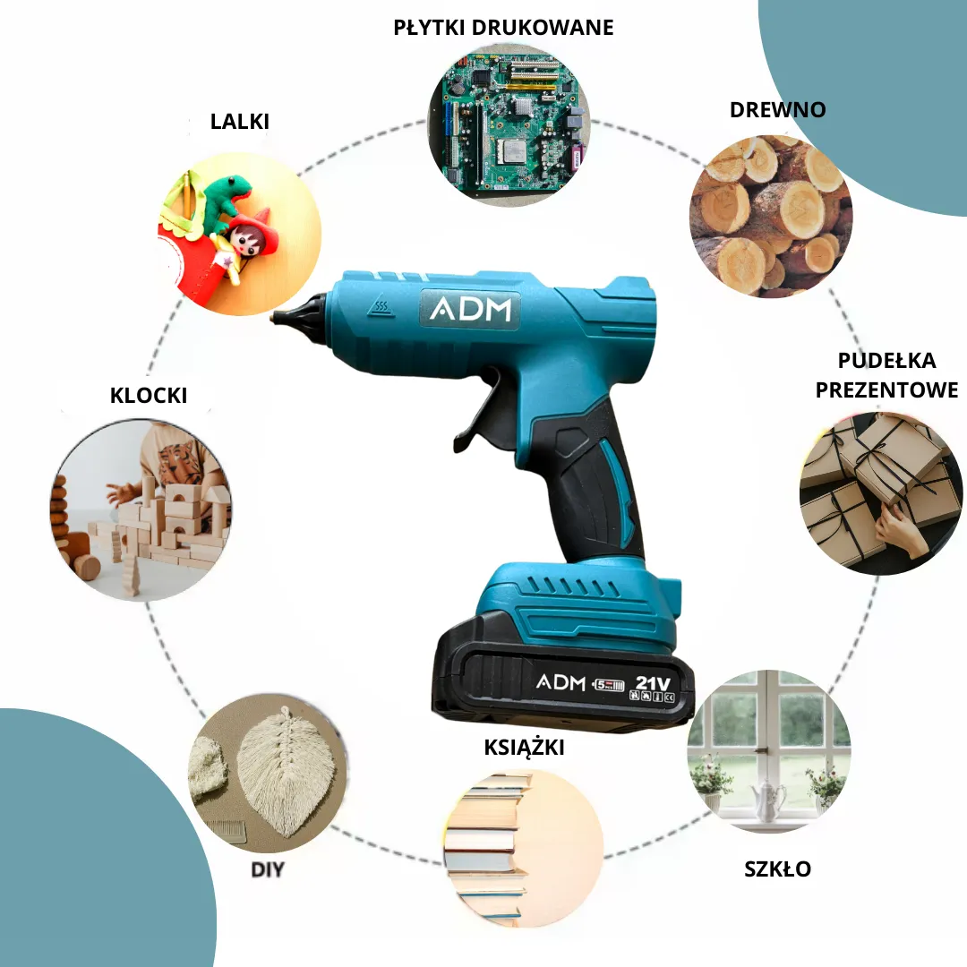 Bezprzewodowy Pistolet na Klej + 2x Akumulator, Szybkie nagrzewanie