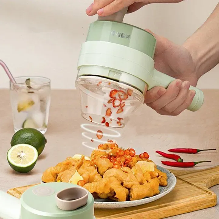 Elektryczna krajalnica 4w1 do warzyw sieka kroi trze obiera USB kompaktowa to praktyczne i nowoczesne rozwiązanie, które ułatwia codzienne obowiązki w domu.