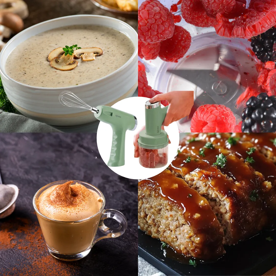 Elektryczny mikser i rozdrabniacz 2-w-1 (bezprzewodowy, USB) to praktyczne, nowoczesne urządzenie zaprojektowane z myślą o wygodzie użytkowania w domu.