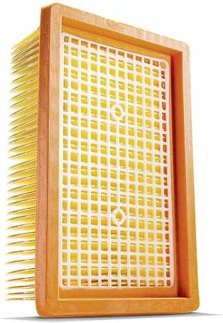 Płaski filtr powietrza do odkurzaczy marki Karcher z serii WD. Wykonany z poliuretanu i wysokiej jakości bibuły filtracyjnej, gwarantuje skuteczną filtrację oraz odporność na uszkodzenia mechaniczne.