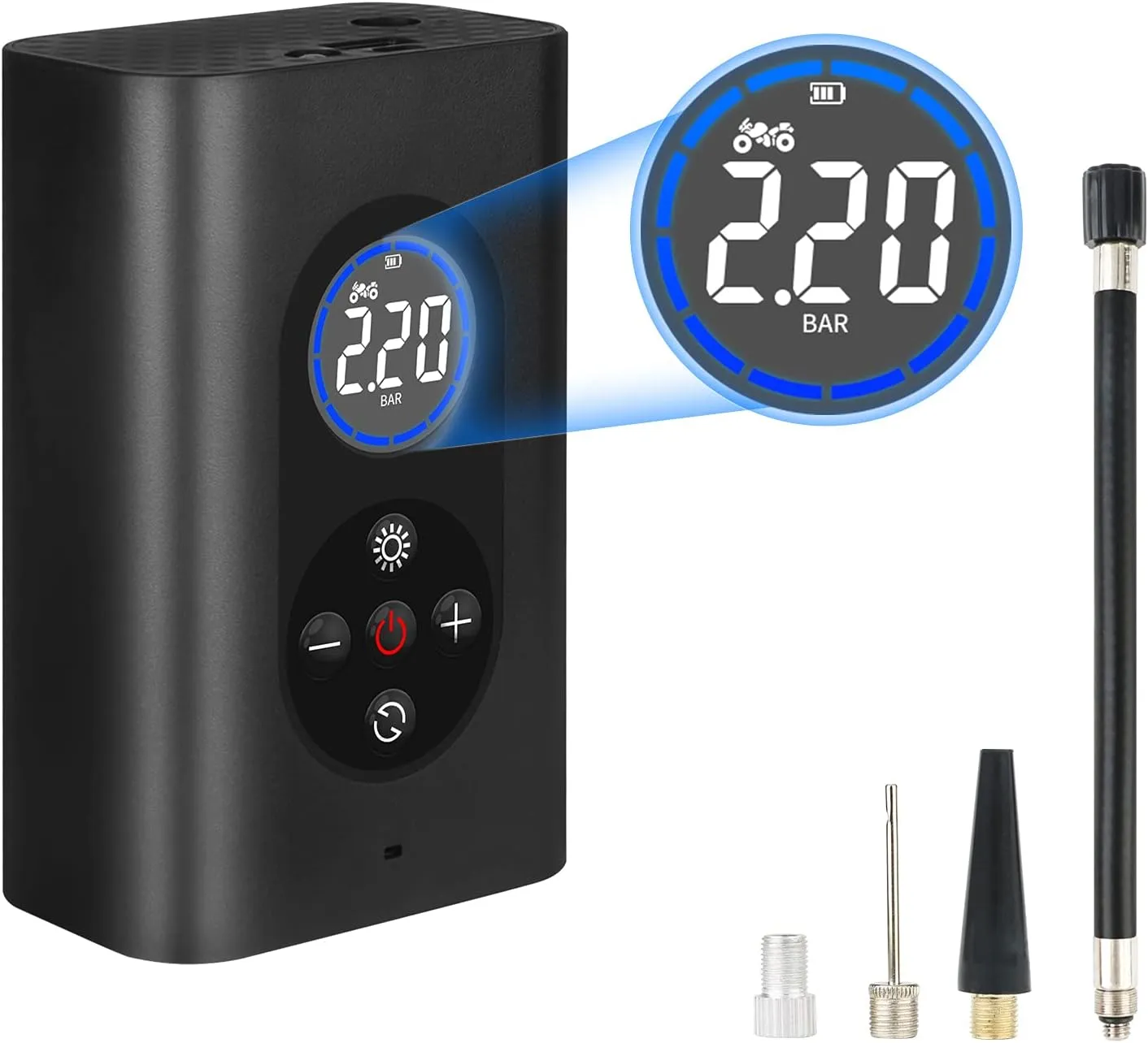 ## Inteligentna mini pompka 150 PSI – preset ciśnienia, wyświetlacz, powerbank