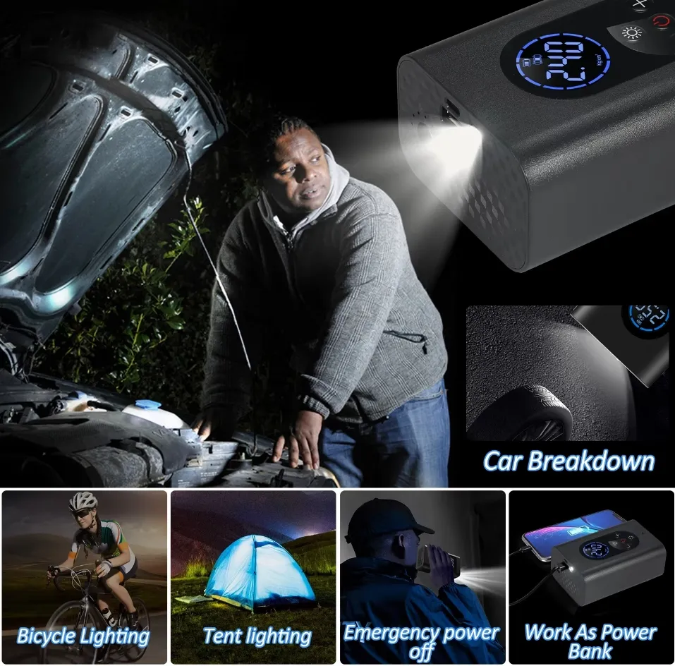 Inteligentna mini pompka 150 PSI – preset ciśnienia, wyświetlacz, powerbank to funkcjonalne, praktyczne i nowoczesne rozwiązanie, które doskonale sprawdza się w codziennym użytkowaniu.
