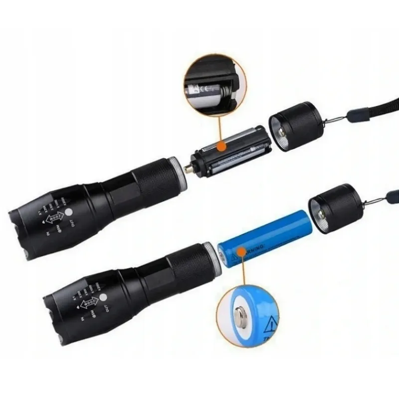 Napisz pierwszą opinię o „Latarka taktyczna CREE T6 LED zoom mocna”