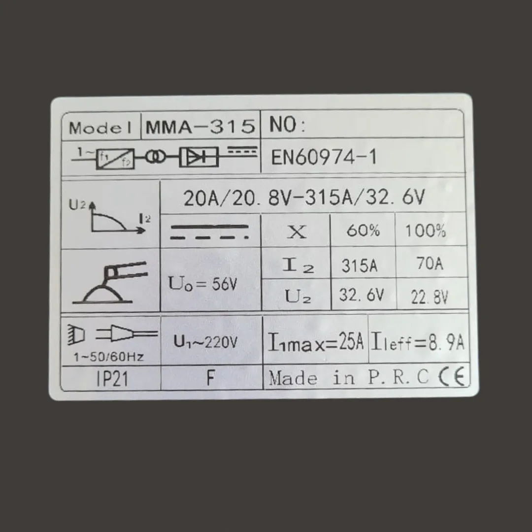 MMA-315 – spawarka inwertorowa 20-315 A, IGBT, cykl 60% (315 A)