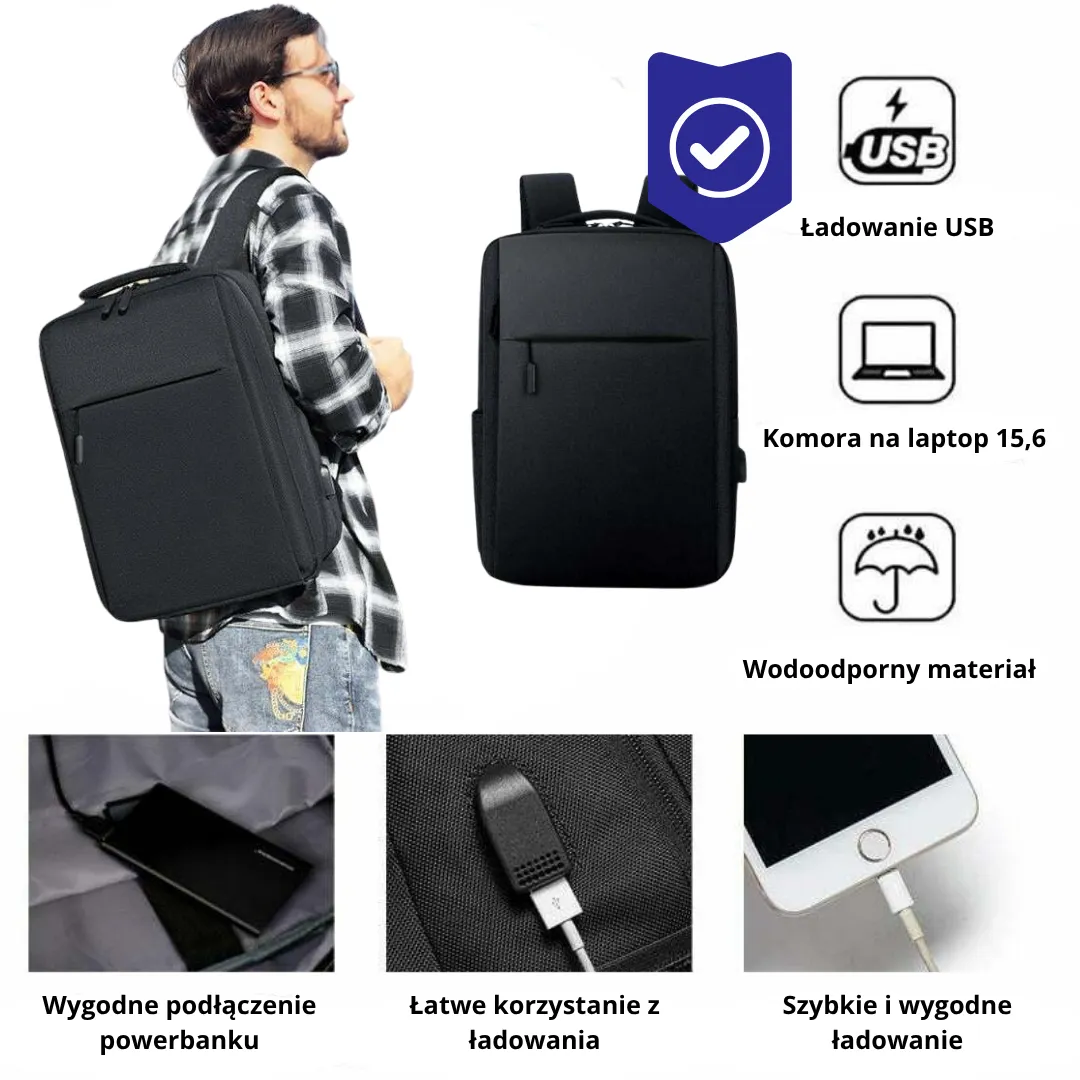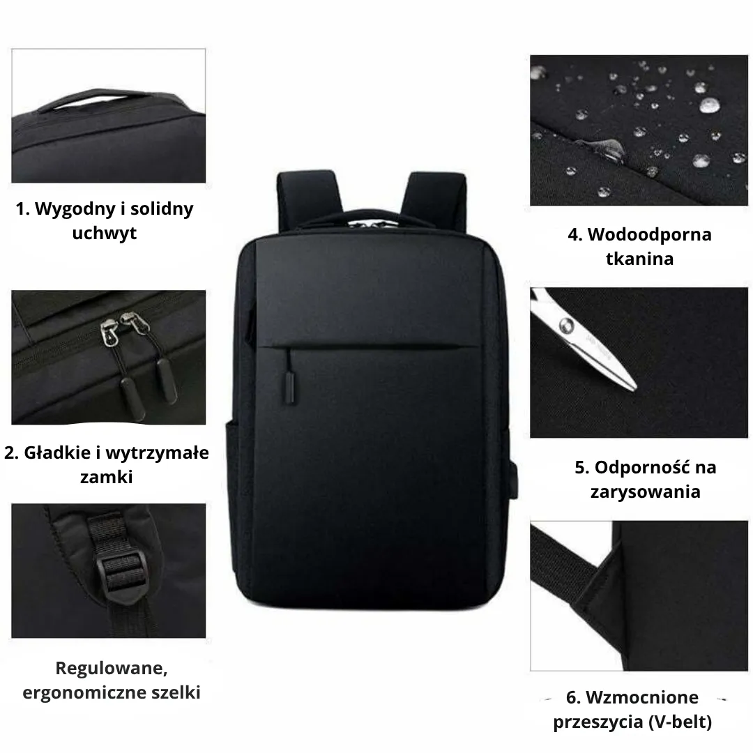 ## Plecak z Zabezpieczeniem Antykradzieżowym Wodoodporny USB, 20L