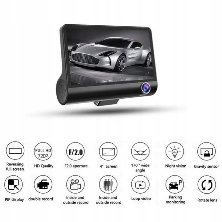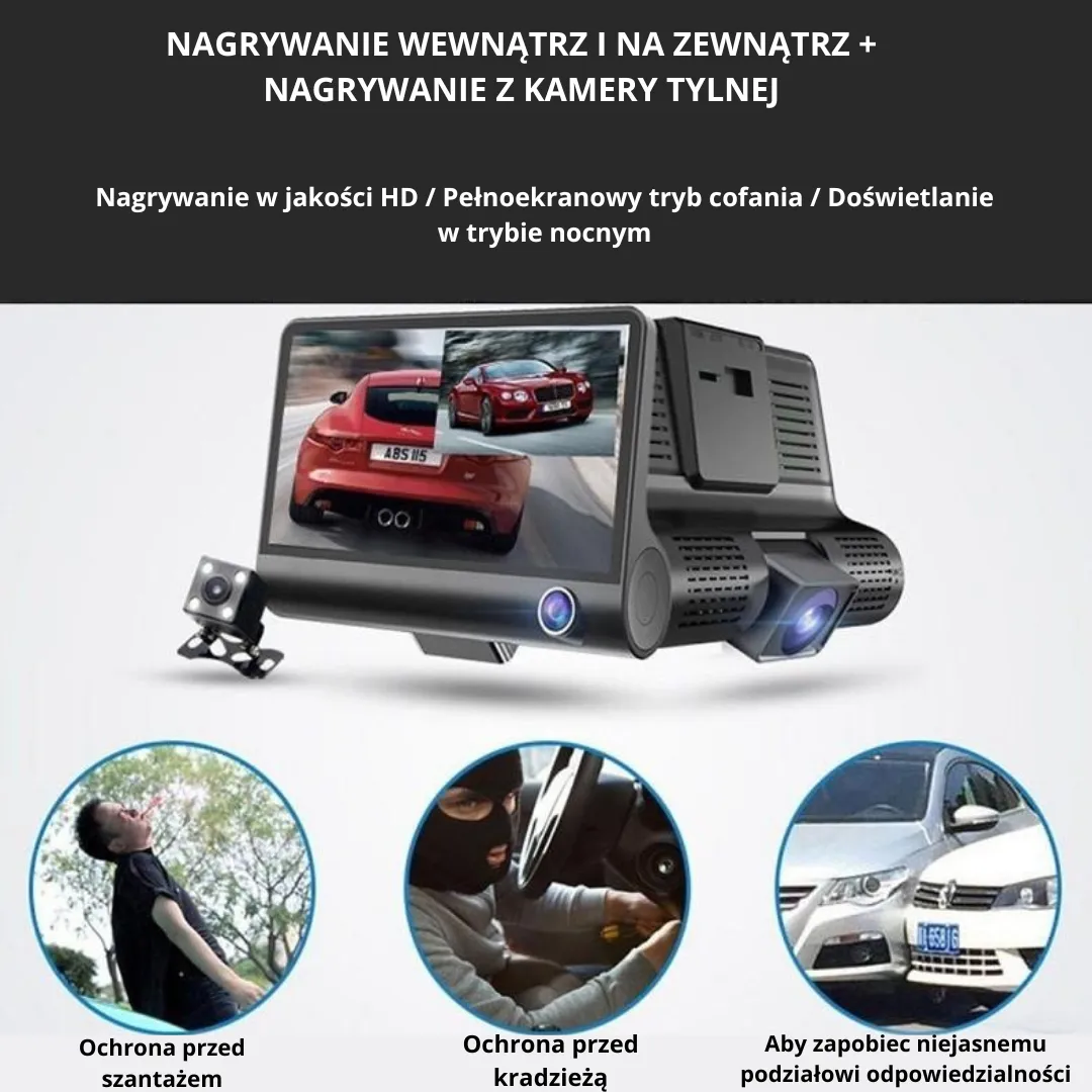 REJESTRATOR JAZDY 3 KAMERY FullHD + kamera cofania tryb parkingowy G-Sensor