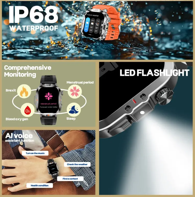 SMARTWATCH V17 IP68 z latarką – 2,01″ TFT, +100 trybów sportowych, BT 5.0