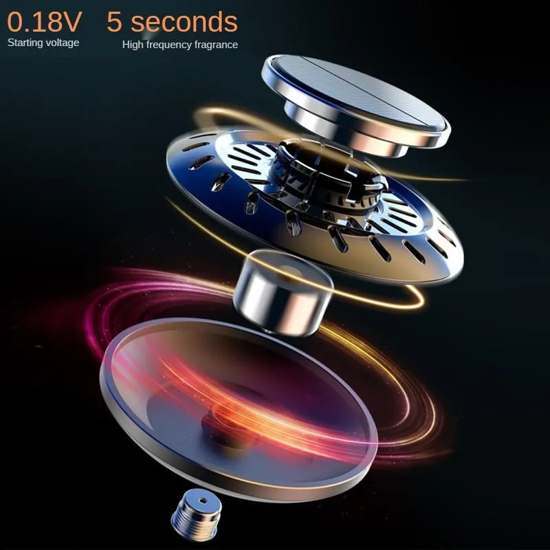 Odświeżacz napędzany energią słoneczną uwalnia zapach przy obrocie turbinki.