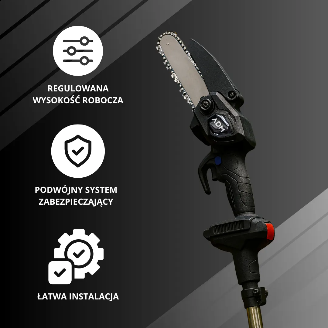 Teleskopowy wysięgnik do mini piły łańcuchowej — tnij wyżej, bez drabiny