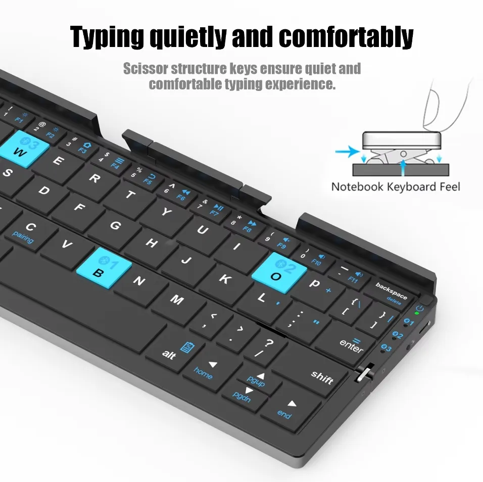 Ultracienka składana klawiatura Bluetooth QWERTY – iOS/Android/Windows to wygodne, praktyczne i funkcjonalne rozwiązanie do codziennego użytku w domu lub ogrodzie.
