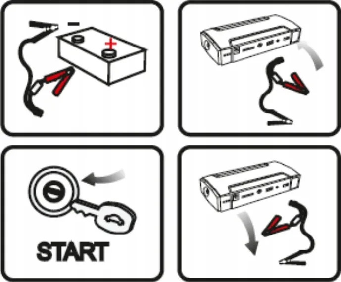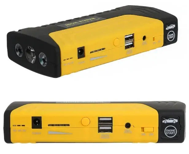Zestaw rozruchowy pozwala odpalić samochód przy rozładowanym akumulatorze. Dodatkowo pełni funkcję powerbanku i latarki LED.